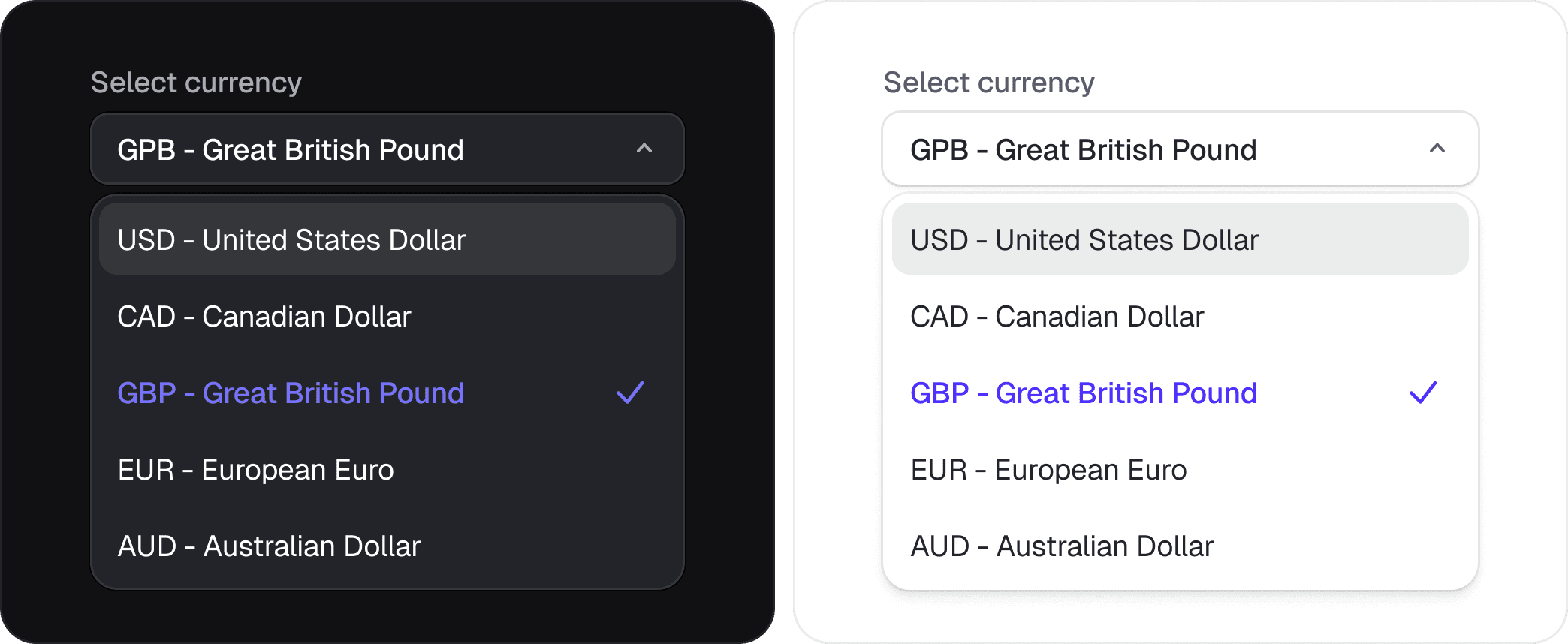 As a result, components were completely theme-agnostic. Dark mode required little to no overrides, and no dark-specific Tailwind or CSS attributes were needed. Most components worked in both themes by default simply by flipping the theme context.